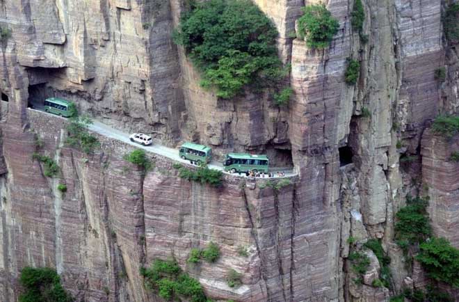 Đường hầm Guoliang được coi là một trong những con đường nguy hiểm nhất dành cho tài xế trên thế giới, chủ yếu là vì nó hẹp và ngoằn ngoèo. Tuy nhiên thực tế, việc lái xe qua rìa núi không quá nguy hiểm nếu các tài xế chịu khó tập trung. Đường hầm ở ngôi làng Guoliang khiến người ta gợi nhớ đến một công trình hoành tráng khác. Theo đó một người đàn ông Trung Quốc đã dành 36 năm đào một kênh dẫn nước dài 10km xuyên qua ba ngọn núi để dẫn nước về ngôi làng của ông. |