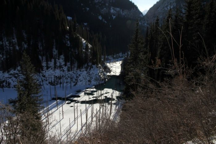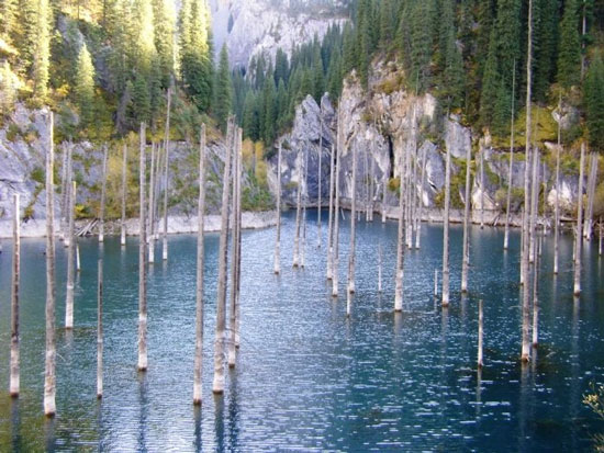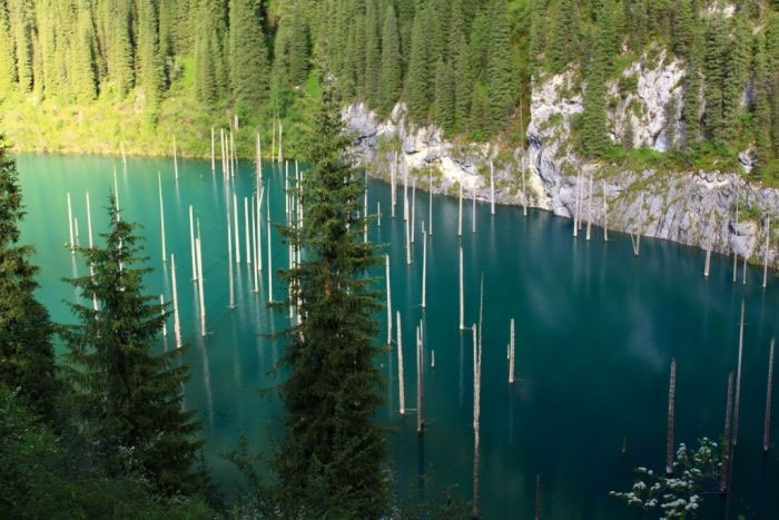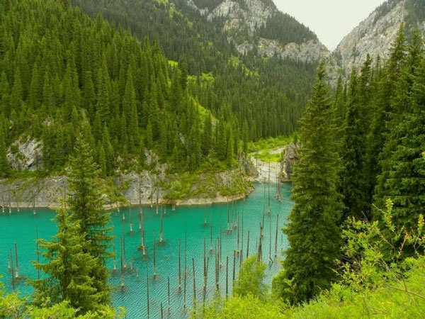 Hồ Kaindy, còn gọi là hồ Chết, khiến không ít du khách ngỡ mình đang lạc bước vào thế giới siêu thực.