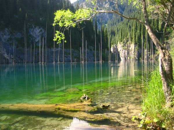 Hồ Kaindy có nước trong vắt nhìn thấy đáy.