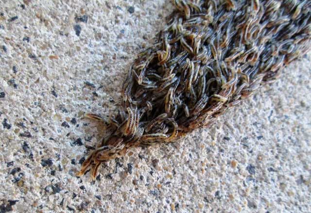 Vì chúng quá yếu và dễ bị chim hoặc các loài săn mồi khác tấn công nên kể từ khi đẻ ra, chúng xếp chồng lên nhau rồi di chuyển để tìm mồi ăn. Hình dạng đó tạo thành ảo giác cho con người khi nhìn từ xa là "con rắn".
