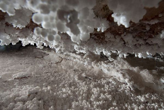 Những tinh thể đá đang hình thành ở độ sâu 150m dưới lòng đất có dáng vẻ giống như những bông hoa súp lơ nhỏ.