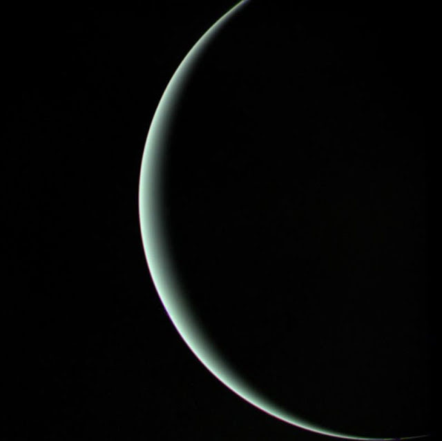Hình ảnh lưỡi liềm chụp từ Voyager 2 khi nó đang bay xa khỏi hành tinh.