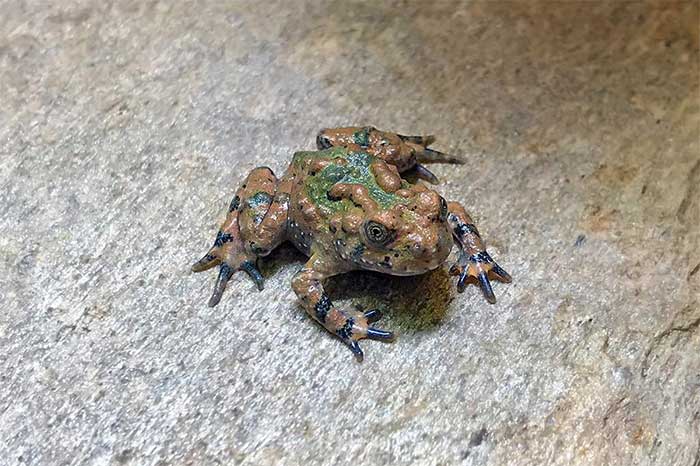 Việt Nam chỉ có duy nhất một loài cóc tía, đó là cóc tía chân màng nhỏ, có danh pháp là Bombina microdeladigitora. Trong nhiều tài liệu ở nước ta, chúng được gọi ngắn gọn là loài cóc tía. (Ảnh: Luan Thanh Nguyen/ Berkeley.edu).