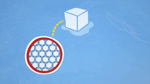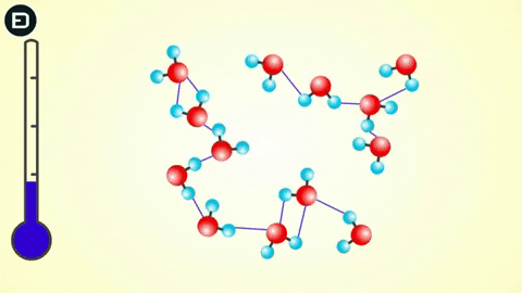 Nhưng khi nhiệt độ hạ xuống <4oC, các phân tử nước di chuyển chậm lại đủ để các liên kết Hydro kết nối với nhau, vì vậy cấu trúc phân tử nước thay đổi tạo thành mạng lưới.